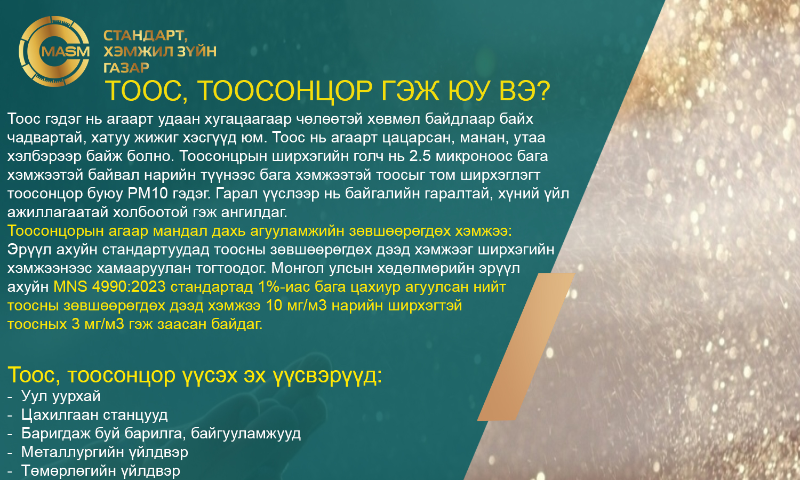 Стандартын хэрэгжилтийн үр дүнг нэмэгдүүлэх “Нэг стандарт-Нэгдсэн улс” нөлөөллийн аяны хүрээнд тус хэлтсийн бүтээгдэхүүн баталгаажуулалтын алба нь 2025 оны 06 дугаар сарын 04-ний өдөр Баянхонгор суманд үйл ажиллагаа байгаа, Үсчин гоо сайхан, халуун ус, сауны үйлчилгээ эрхэлж байгаа иргэн аж ахуйн нэгжид дараах стандартаар сургалт мэдээллийг хийлээ.
